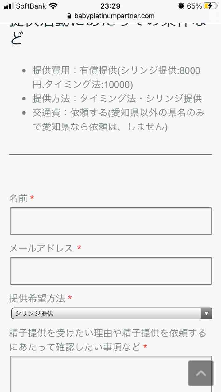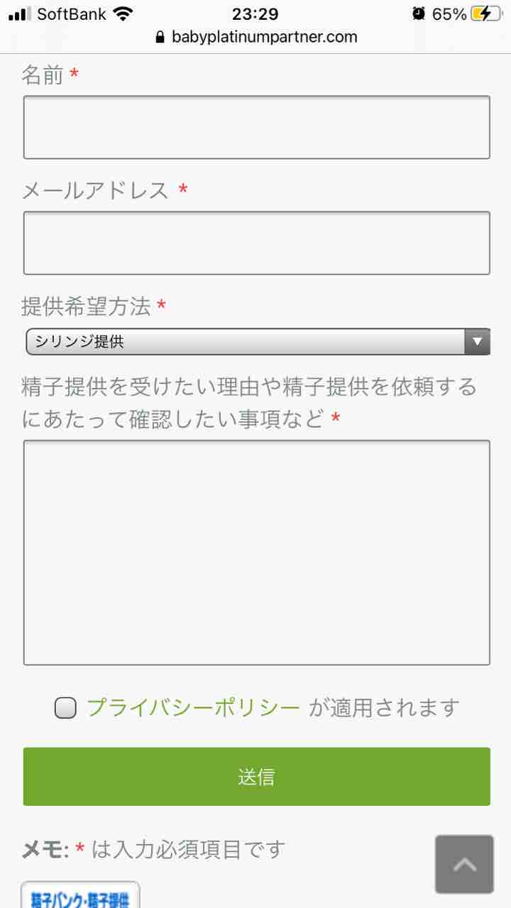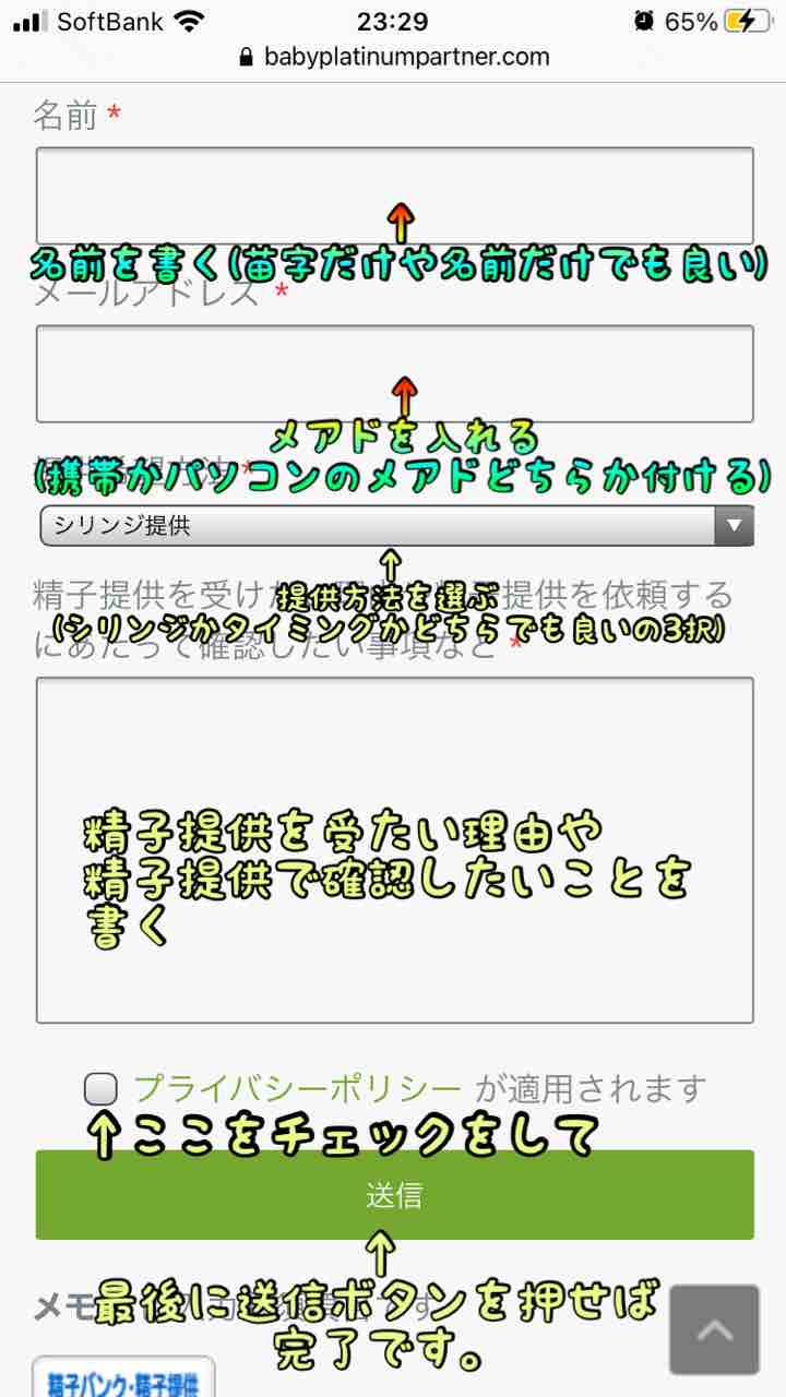 ③名前とメアドを書いて、提供希望方法シリンジかタイミングかどちらでも良いの中で、選んで、最後に精子提供を受けたい理由や精子提供の依頼するにあたって確認したい事頂などのメッセージをかきます。